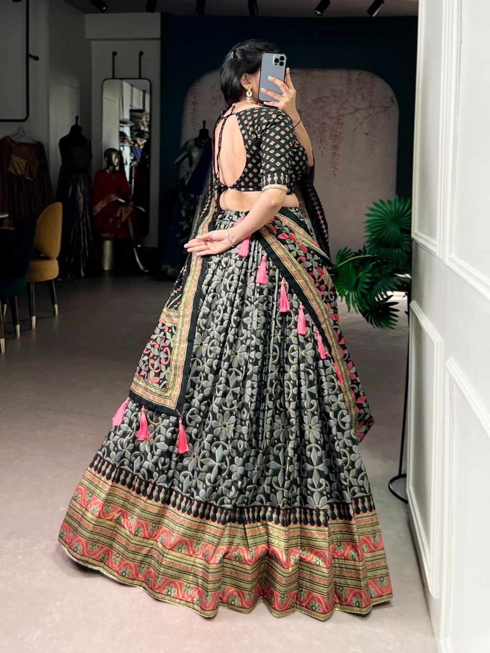 | Name : | PIYU 02-2 Silk Digital print Black Lehnga |
