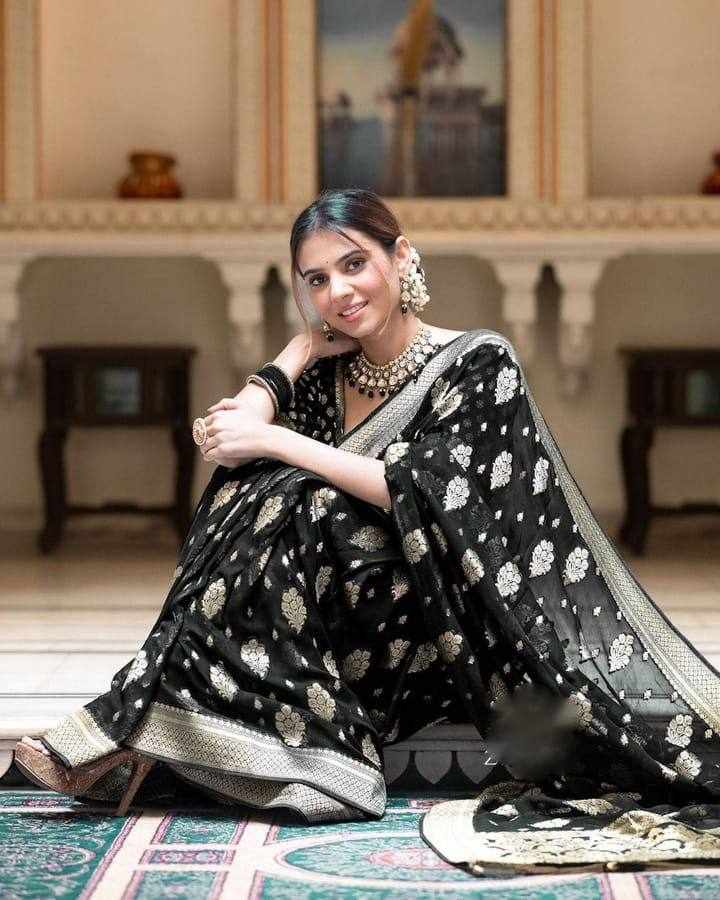 KP-R 190 New Traditional Wear Black Saree