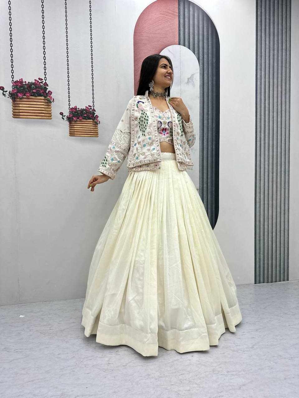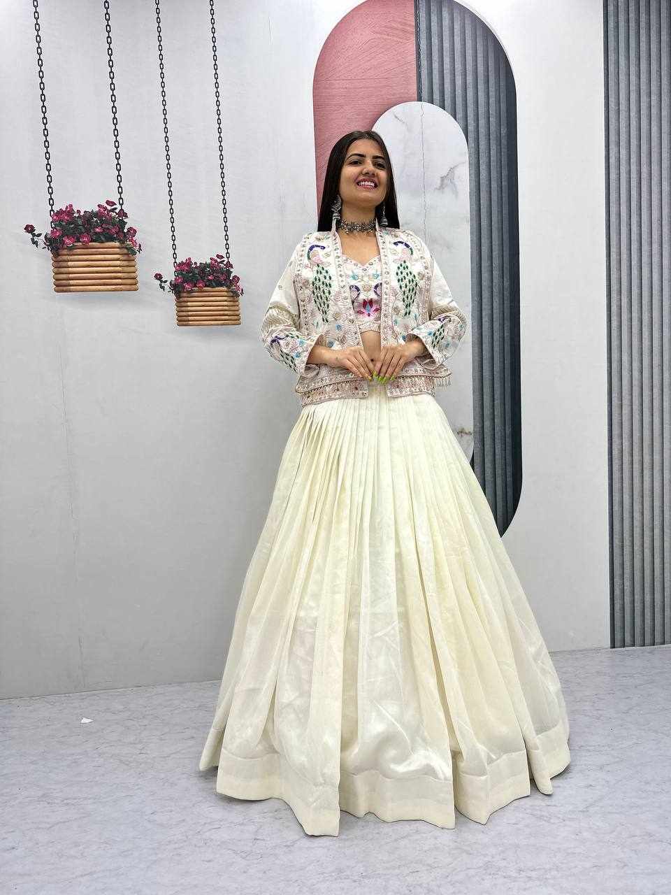 PC 559 New Modern Party Wear White Lehnga With Jacket has been successfully added to your cart .